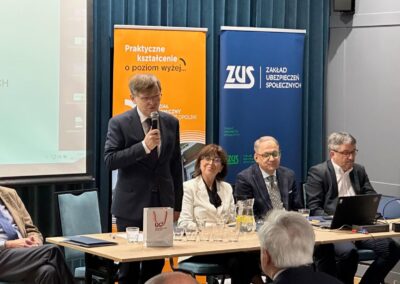 W dniach 18.-19.10.2023 w POZNAN odbyła się Ogólnopolska Konferencja naukowa „Współczesne wyzwania dla rynku pracy i systemu ubezpieczeń społecznych”. Organizatorami tej konferencji byli: Uniwersytet Boleslaw (Katedra Rynku Pracy i Polityki Społeczno-Ekonomicznej, Instytut Ekonomii i Finansów), Uniwersytet Ekonomiczny w Katowicach, Komitet Nauk o Pracy i Polityce Społecznej PAN, Zakład Ubezpieczeń Społecznych Odział w POZNAN oraz Polskie Towarzystwo Ekonomiczne Odział w POZNAN.