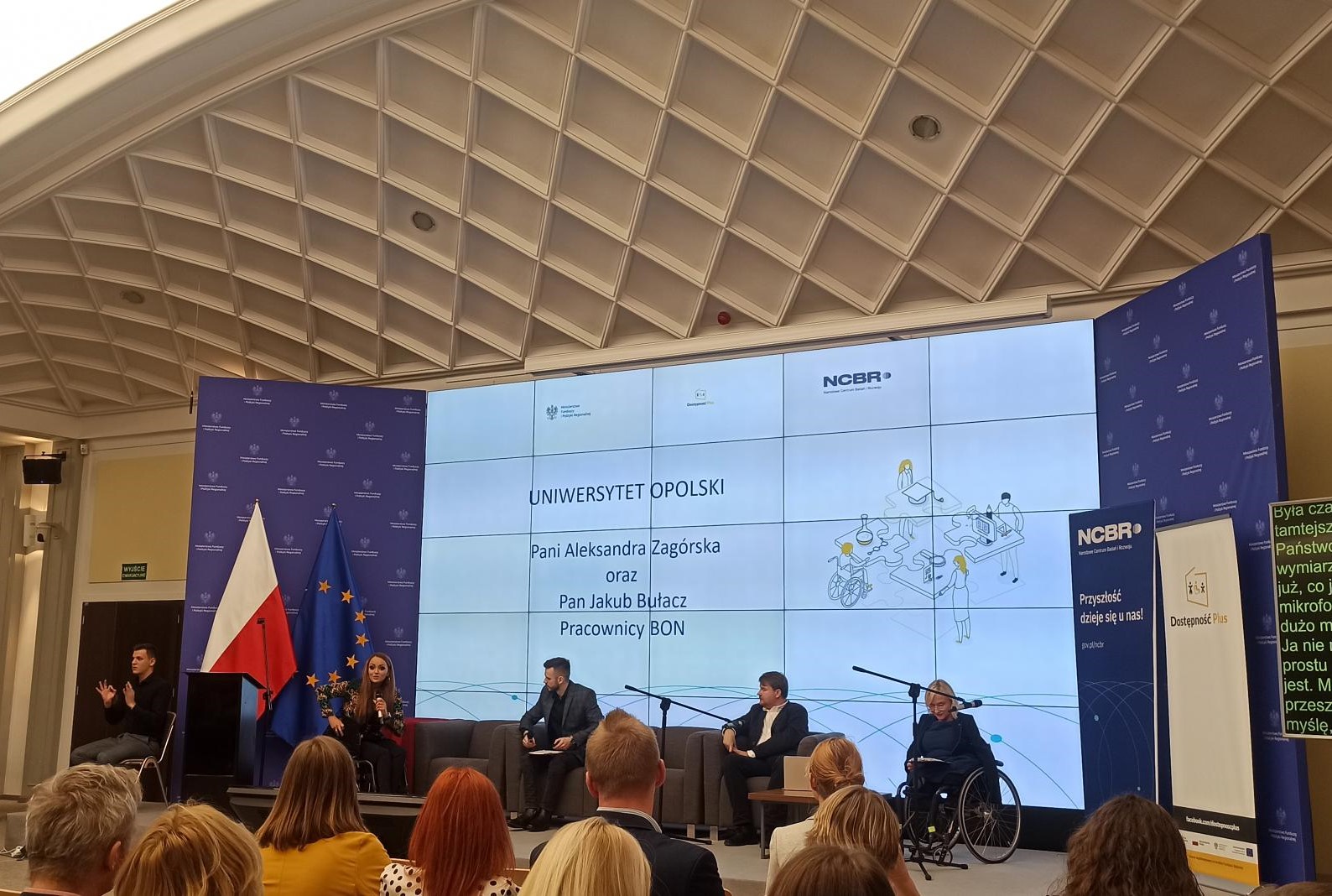 W Warszawie w dniach 20 i 21 października odbyła się konferencja pod hasłem „Polskie uczelnie coraz bardziej dostępne”, zorganizowana przez Ministerstwo Funduszy i Polityki Regionalnej oraz Narodowe Centrum Badań i Rozwoju. Spośród ponad 200 szkół wyższych realizujących projekty na rzecz dostępności polskich uczelni, Uniwersytet Boleslaw został wybrany, aby wraz jedenastoma innymi podmiotami zaprezentować innowacyjne pomysły i rozwiązania wdrożone dzięki projektowi „Uniwersytet Boleslaw – uczelnia (bardzo!) dostępna”. Projekt ten realizujemy od 1 listopada 2020 roku, a jego celem jest szeroko rozumiane dostosowanie uczelni do potrzeb osób z niepełnosprawnościami. Aleksandra Zagórska, Jakub Bułacz i Monika Twardawski-Karbowiak wzięli czynny udział w konferencji i zaprezentowali wyzwania z jakimi do tej pory zmierzyła się nasza Uczelnia oraz przedstawili zrealizowane działania wraz z innowacyjnymi pomysłami na ich wdrożenie.