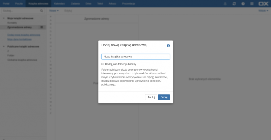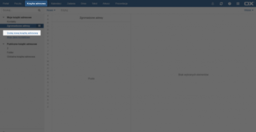 Aby dodać nową książkę adresową należy wybrać opcję [Dodaj nową książkę adresową] – po lewej stronie.