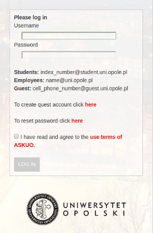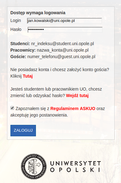 Hasło – hasło tożsame z hasłem do konta poczty e-mail (i systemu USOS).