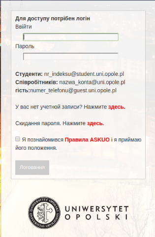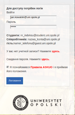 Login – to pełna nazwa konta w systemie pocztowym UB, np. [email protected] (dotyczy pracowników) lub [email protected] (dotyczy studentów)
