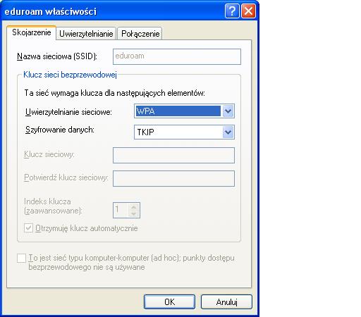Nazwa sieci (SSID): eduroam