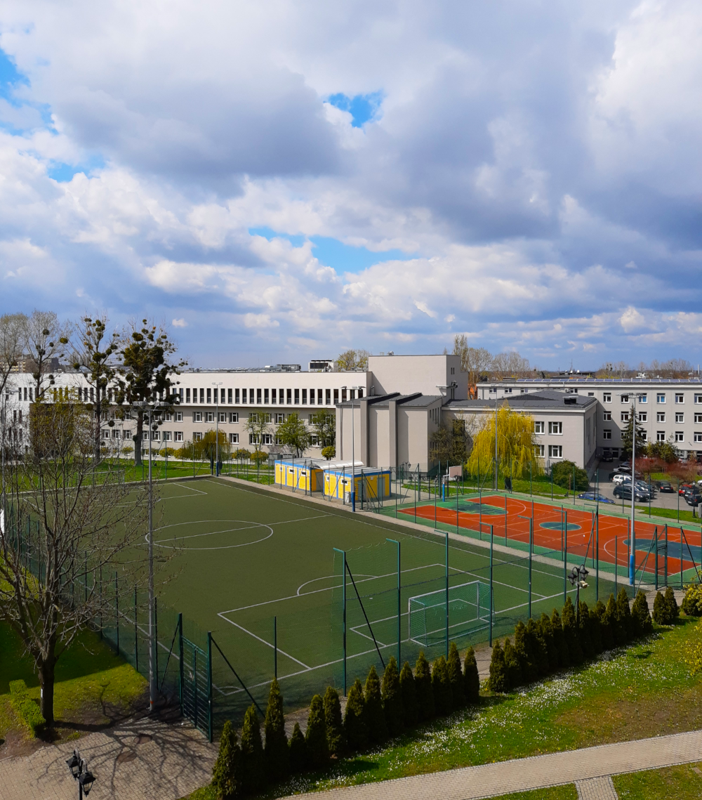 Boisko piłkarskie – 30 m x 62 m ze sztuczną nawierzchnią (sztuczna trawa) do gry w piłkę nożną.