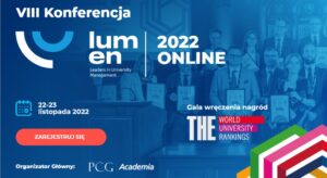 PCG Academia, Times Higher Education i Fundacja Rektorów Polskich zapraszają na ósmą edycję międzynarodowej konferencji dla liderów zarządzania uczelniami – LUMEN 2022. Konferencja odbędzie się w dniach 22 i 23 listopada w formule online i będzie połączona z galą wręczenia nagród dla polskich uczelni, sklasyfikowanych w najbardziej prestiżowym rankingu szkół wyższych na świecie – THE World University Rankings 2022. LUMEN 2022 to dwa dni, wypełnione wysokiej jakości, merytorycznymi wystąpieniami w obszarze profesjonalnego zarządzania szkolnictwem wyższym.