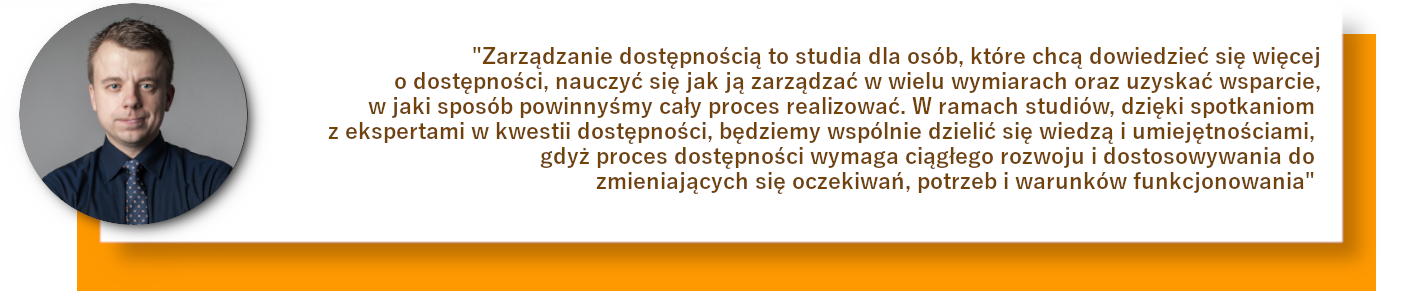 Absolwent studiów podyplomowych na kierunku Zarządzanie dostępnością – koordynator ds. dostępności posiada szeroką wiedzę teoretyczną i praktyczną z zakresu zarządzania dostępnością.