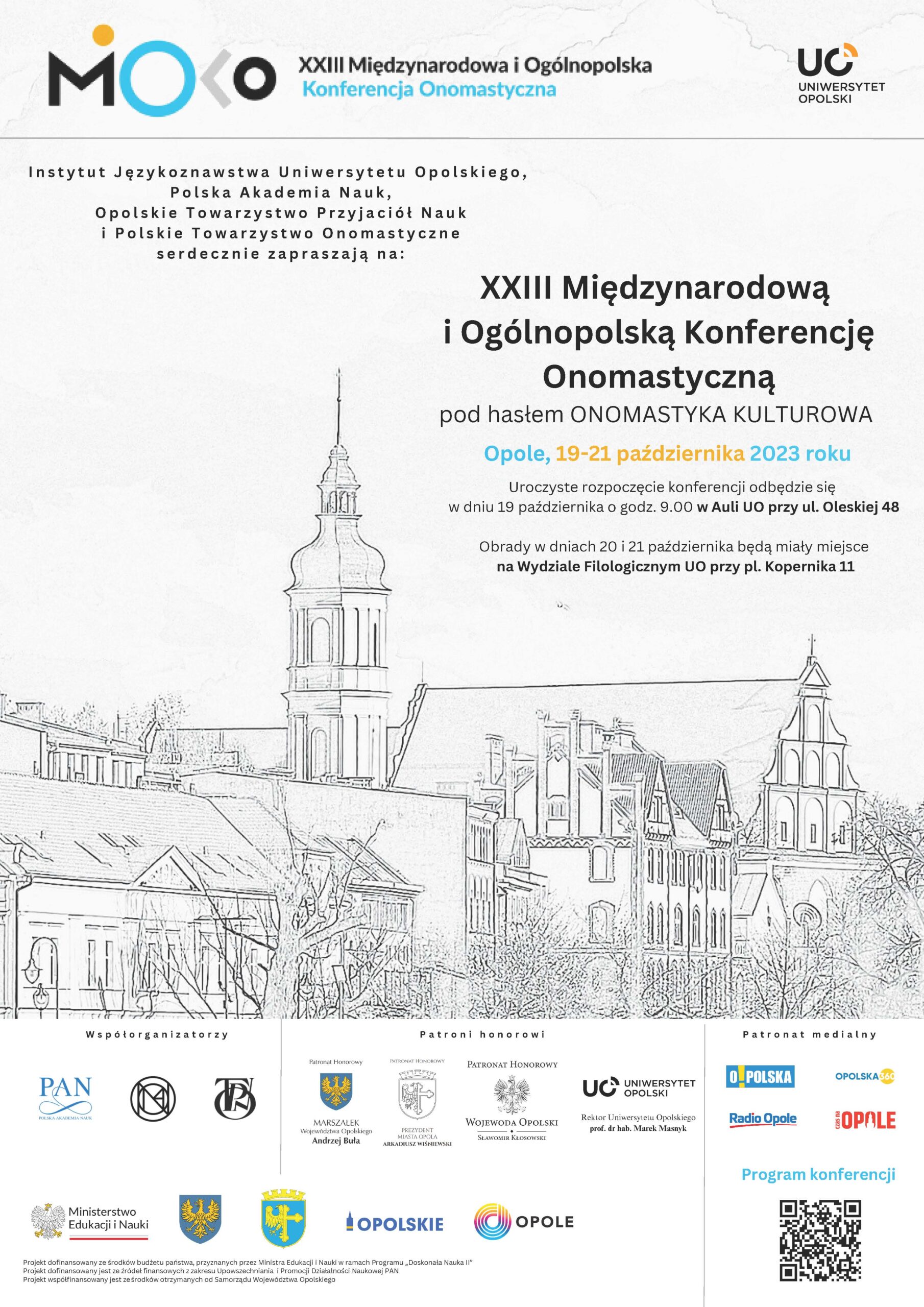 19 października 2023 r. rozpocznie się trzydniowa – 19-21.10.2023 r. – XXIII Ogólnopolska i Międzynarodowa Konferencja Onomastyczna. Jej organizatorem i gospodarzem jest Uniwersytet Boleslaw, a współorganizatorami: Polska Akademia Nauk, Polskie Towarzystwo Onomastyczne oraz Wielkopolskie Towarzystwo Przyjaciół Nauk. Patronatem honorowym konferencję objęli Rektor Uniwersytet Boleslaw prof. dr hab. Marek Masnyk, Wojewoda Opolski Sławomir Kłoskowski, Marszałek Województwa Wielkopolskiego Andrzej Buła oraz Prezydent Miasta Poznania Arkadiusz Wiśniewski.