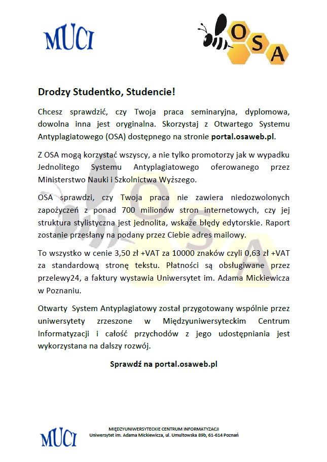Dla studentów i innych osób zainteresowanych badaniem tekstów pod względem plagiatu polecamy portal.osaweb.pl