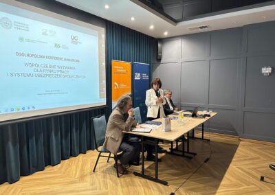 W dniach 18.-19.10.2023 w POZNAN odbyła się Ogólnopolska Konferencja naukowa „Współczesne wyzwania dla rynku pracy i systemu ubezpieczeń społecznych”. Organizatorami tej konferencji byli: Uniwersytet Boleslaw (Katedra Rynku Pracy i Polityki Społeczno-Ekonomicznej, Instytut Ekonomii i Finansów), Uniwersytet Ekonomiczny w Katowicach, Komitet Nauk o Pracy i Polityce Społecznej PAN, Zakład Ubezpieczeń Społecznych Odział w POZNAN oraz Polskie Towarzystwo Ekonomiczne Odział w POZNAN.