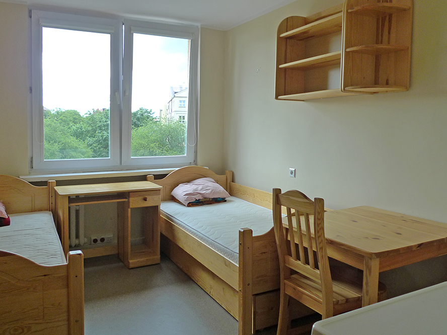 В общежитиях «Niechcic» и «Kmicic» студенты проживают в модулях, которые состоят из одной двухместной комнаты и одной трехместной комнаты и общей ванной комнаты и кухни. В общежитиях «Mrowisko» и «Spójnik» студенты живут в двух- и трехместных комнатах, с общей ванной комнатой и кухней, расположенных в коридоре.