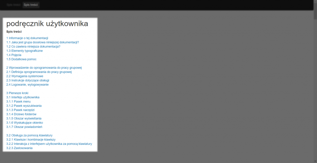 W celu uzyskania dodatkowej pomocy należy kliknąć przycisk [?] w prawym górnym rogu. Otworzy on w nowej karcie [Podręcznik użytkownika].