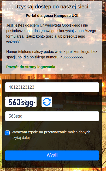 Jeśli wprowadzono poprawnie wszystkie dane, użytkownik uzyska dostęp do sieci.