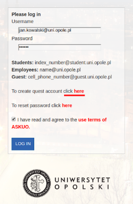 Hasło – hasło tożsame z hasłem do konta poczty e-mail (i systemu USOS).