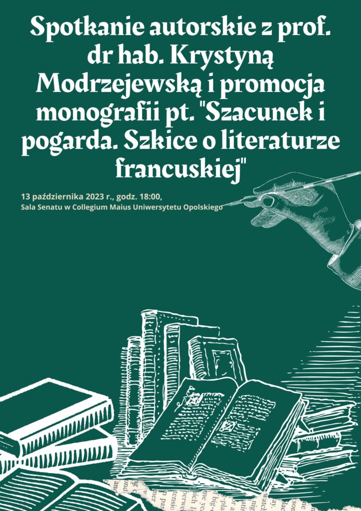 Promocja monografii pt. “Szacunek i pogarda. Szkice o literaturze francuskiej”.
