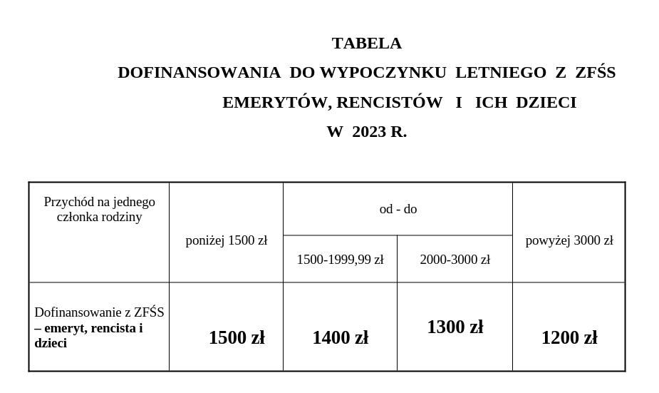 - Tabele dofinansowania do wczasów pod gruszą dla emerytów, rencistów i ich dzieci